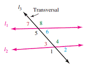 A line that intersects two coplanar lines in two distinct (different) points is called a transversal